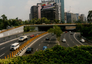 | The periferico, in Mexico City | The monument to Benito Juarez, and the castleof Chapultepec in the background | The Zocalo, in the historical center of MexicoCity |