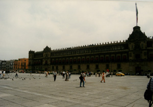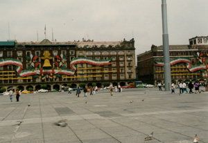 | The zocalo on 16 of September, day of the aniversaryof the independence from the spanish empire which finished in 1821 | Also the zocalo (main square) | A colonial building in Mexico City |