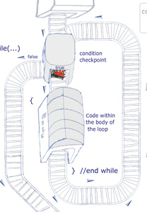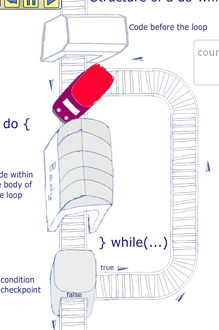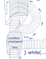 This series of Limited Edition Flash animations also known as the "Train-track diagrams" have been produced as complementary material for an introductory course to computing science and programming in 2007. Each animation has its own controls for playback and moving backward and forward, and some of them respond to keypresses of the arrow keys.