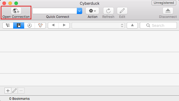 The first time you run Cyberduck, it will display a window similar to the following: