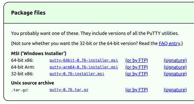 You will use a program named Putty. Download the latest "Package file", as follows: