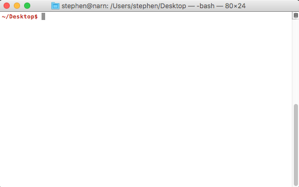 Open a terminal window by starting the 'Terminal' program. You should now see a window as follows: