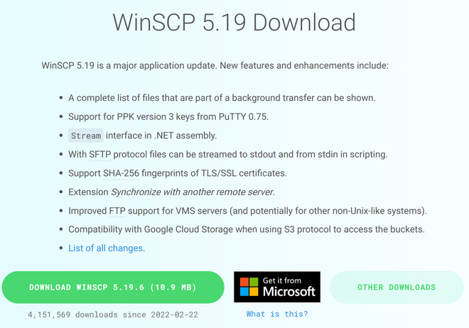 You will use a program named WinSCP. Download the latest "Installation package", as follows: